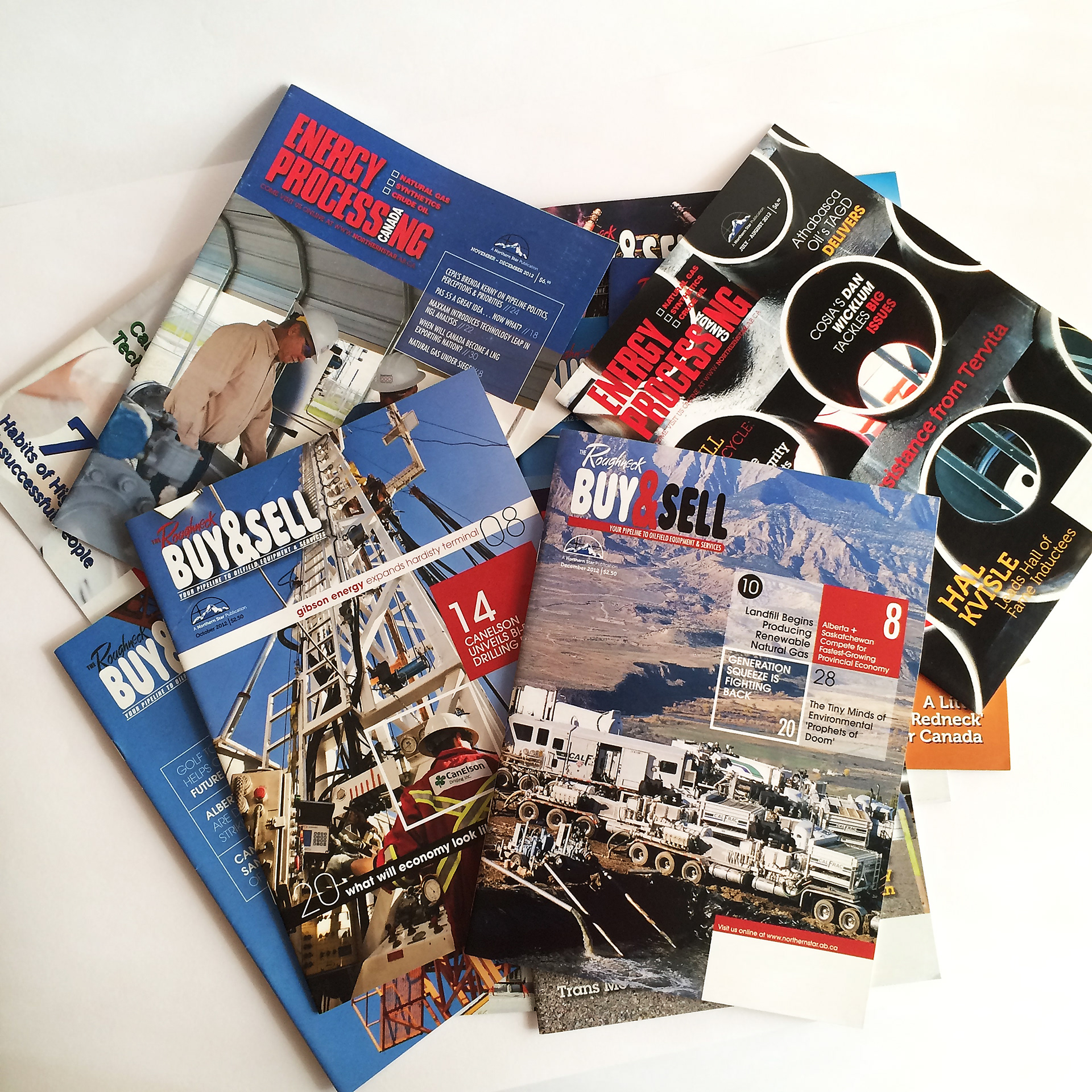 Editorial design for The Roughneck Buy & Sell (monthly) & Energy Processing Canada (bi-monthly) magazines. Northern Star Publications Ltd. Calgary, AB. 2013